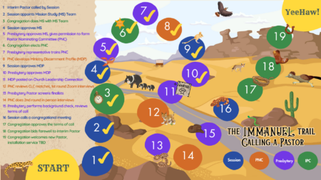 A Mission Study is the process that a congregation goes through to seek discernment about how God would have that church to be and to act in the future. It is led by a committee of the Session, called the Mission Study Team (MST). The process results in a Mission Study Report presented to the Session for approval and to the Presbytery Committee on Ministry for review. This process is required by Presbytery before a congregation can elect a Pastoral Nominating Committee and begin the search for a new pastor.